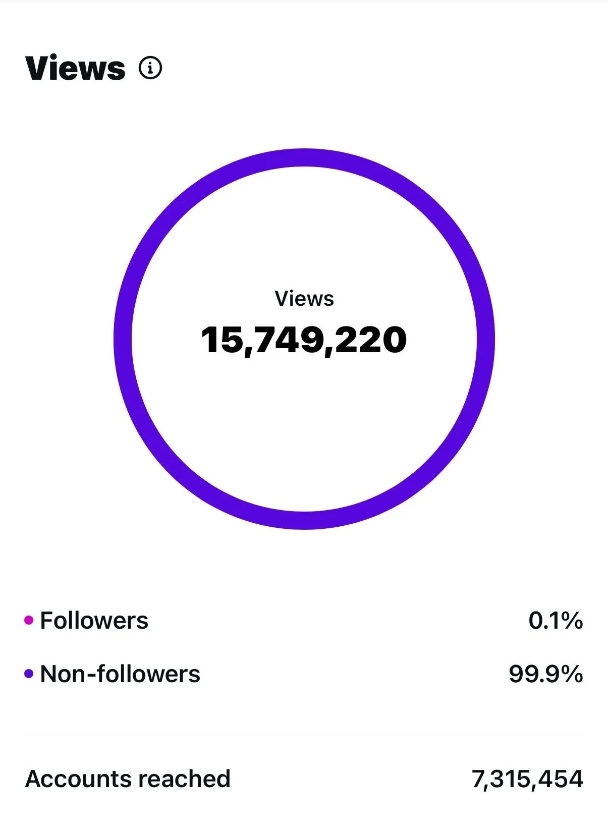 A single reel generated 15.7M views, reaching over 7.3M accounts, with 99.9% of views from non-followers.