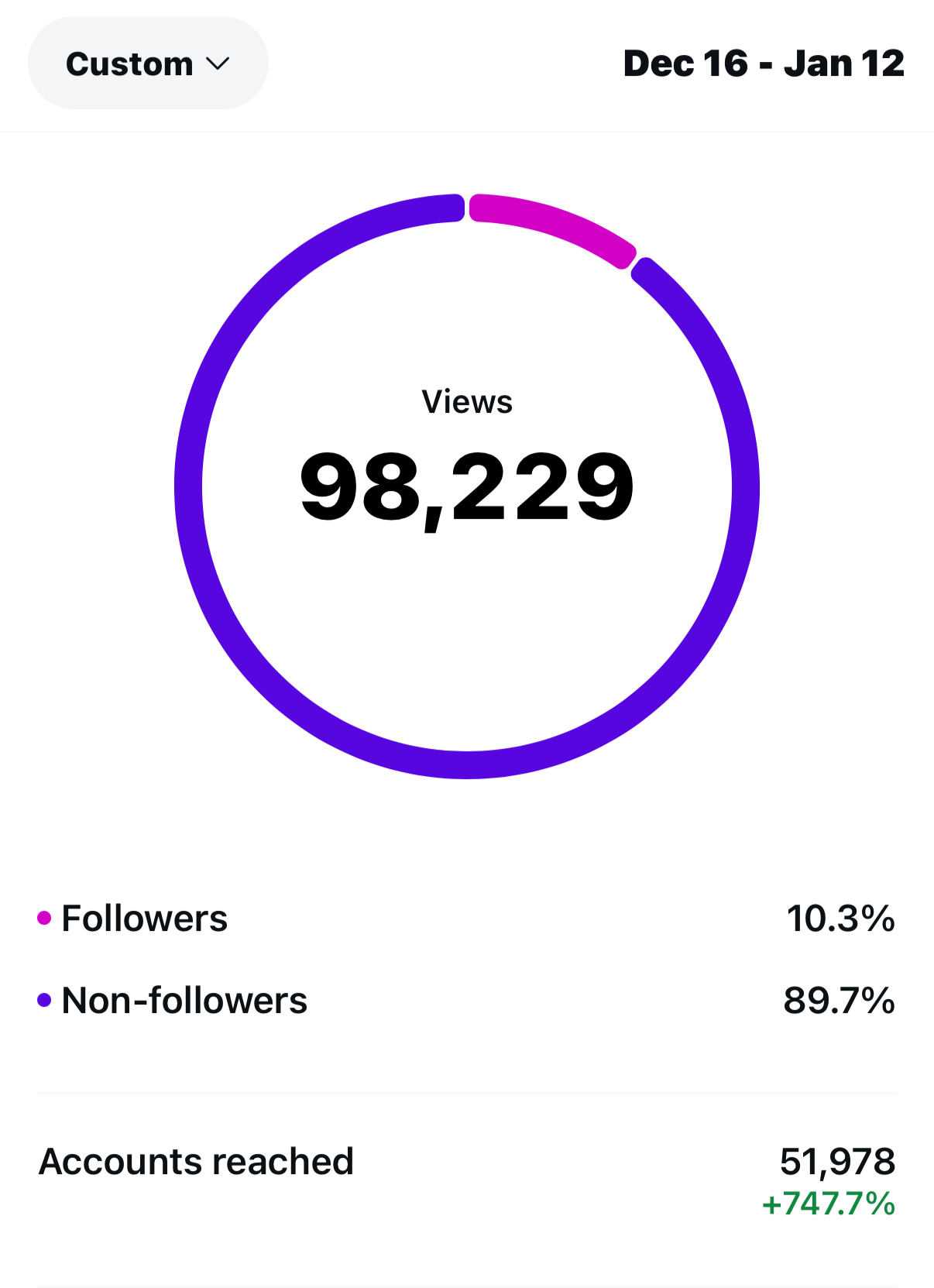 After three months of inactivity, this account generated 98,229 views and reached 51,978 accounts in just one month—nearly all from new audiences.